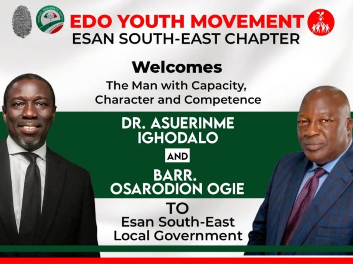 The Edo Youth Movement has declared its support for Asue Ighodalo and Osarodion Ogie as the PDP kicks off its gubernatorial campaign in Esan South East Local Government Area.