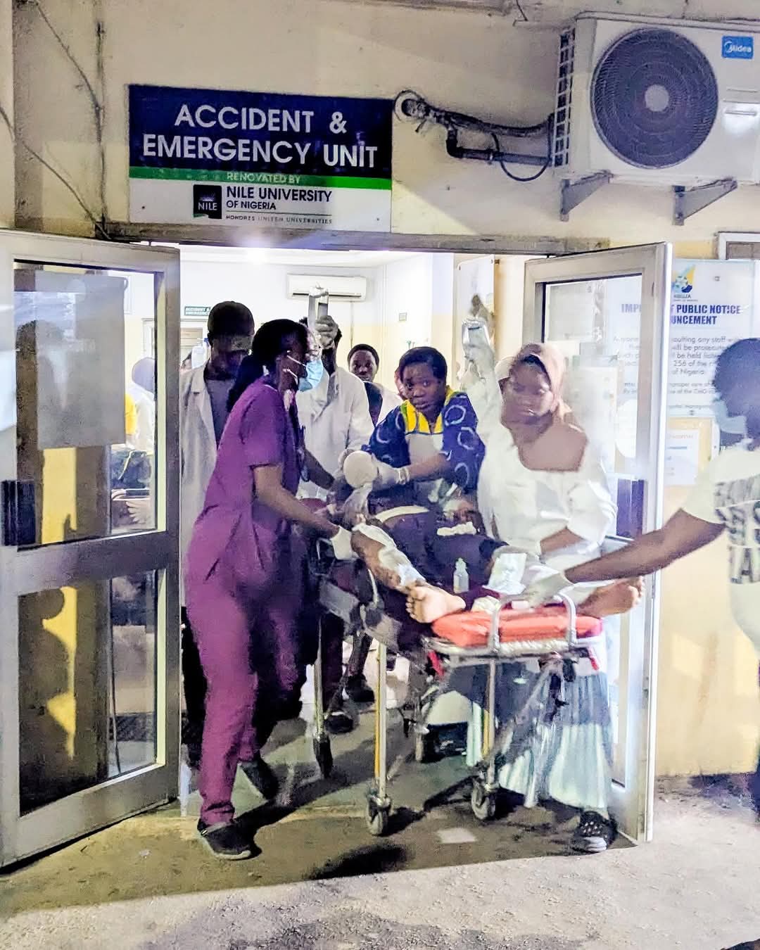 The medical response which began at the Accident & Emergency, A&E, Unit of Asokoro General Hospital, quickly moved to the Intensive Care Unit, and later to a referral facility for advanced treatment.