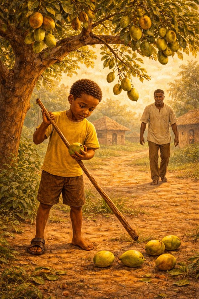 There was a small boy named Chidi. He lived in a quiet village with his parents. Behind their house stood a big mango tree. Every year, the tree gave many sweet mangoes.